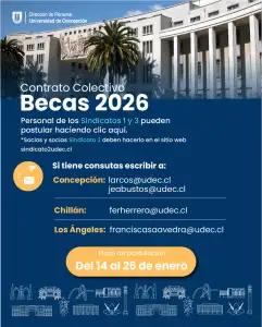 Por su parte, las y los trabajadores del Sindicato N°2 deben efectuar la postulación directamente en la página web del sindicato: www.sindicato2udec.cl.